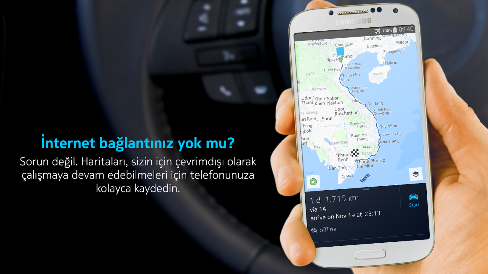 Nokia navigasyon uygulamasını sonunda android versiyonunu da çıkarttı. Ve de çok güzel olmuş . Google play daki ücretli navigasyon uygulamalarına 10 basar nitelikte bir uygulama olmuş. İnternet gereksinimi olmayan ücretsiz güzel bir navigasyon programı sonunda nokia tarafından google play da sunuldu. Henüz uygulama beta olmasına rağmen gelecek sürümlerinde navigasyon açısından lider olabilecek konumda. Ki ücretli navigasyon programlarını denedikten sonra bunu söylemek hiç te zor olmasa gerek. Uygulamayı çevrimdışı olarak kullanabilmek çok güzel. Sadece bize istediğimiz ülkenin haritası indirmek kalıyor. Bir diğer özellik ise türkçe ve sesli olması.